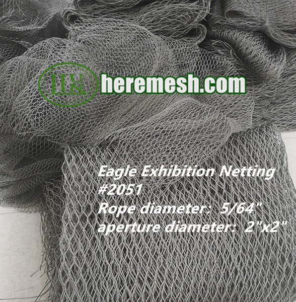 Liulin Wire Mesh completed the delivery of 1500 square meters of stainless steel wire rope netting today. This order is for eagle exhibition netting, using wire mesh size #2051. Mesh#2051 has a diameter of 5/64″ (2.0mm) and an aperture diameter of 2″x2″ (51mm x 51mm).